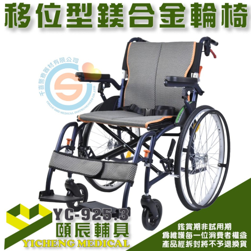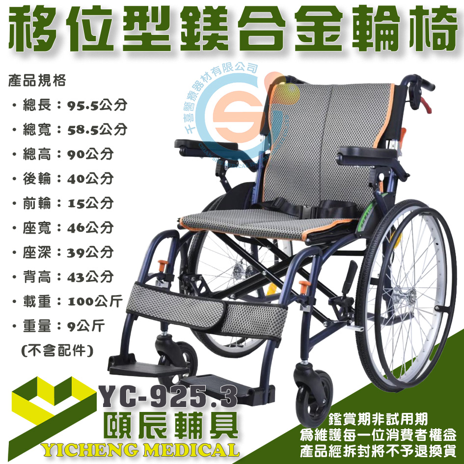 頤辰 YC-925.3鎂合金脊損輪椅 輕量移位型輪椅 超輕量輪椅 外出輕量輪椅 可拆掀扶手 可拆腳靠 千喜醫療