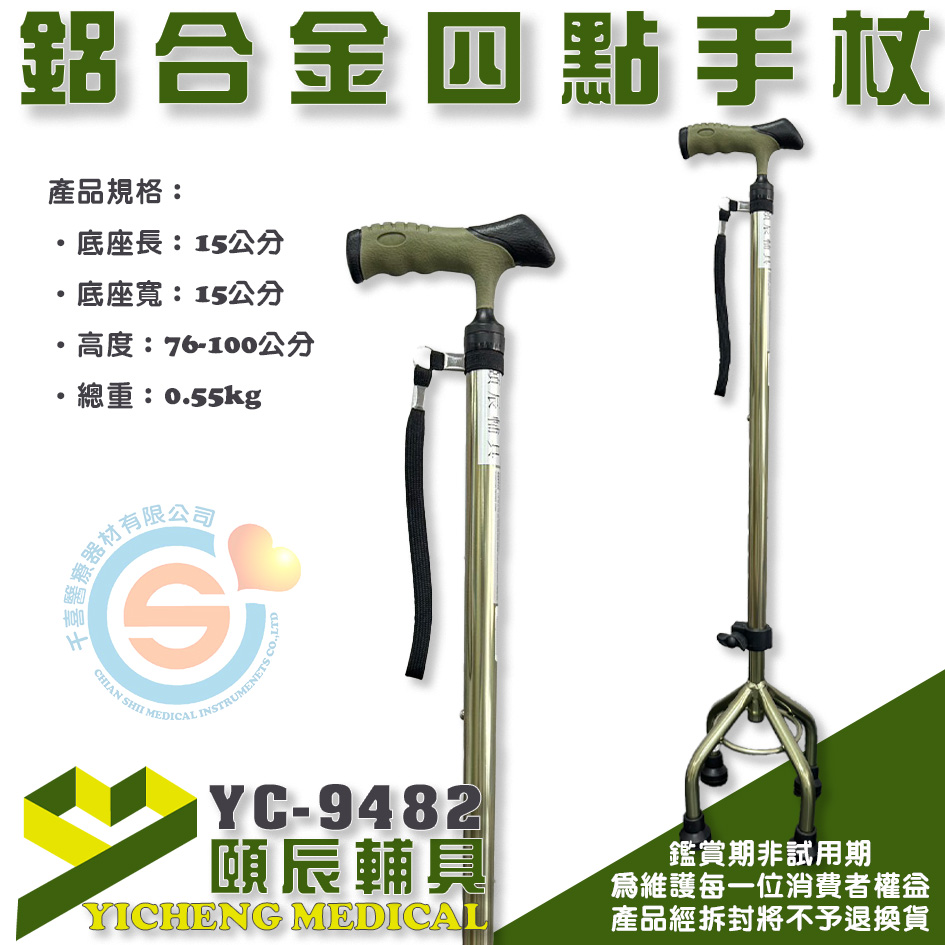 頤辰 YC-9482 鋁合金手杖 四點單手鋁合金柺杖 鋁合金四腳柺 鋁合金單手柺 鋁合金小爪四腳柺 千喜醫療