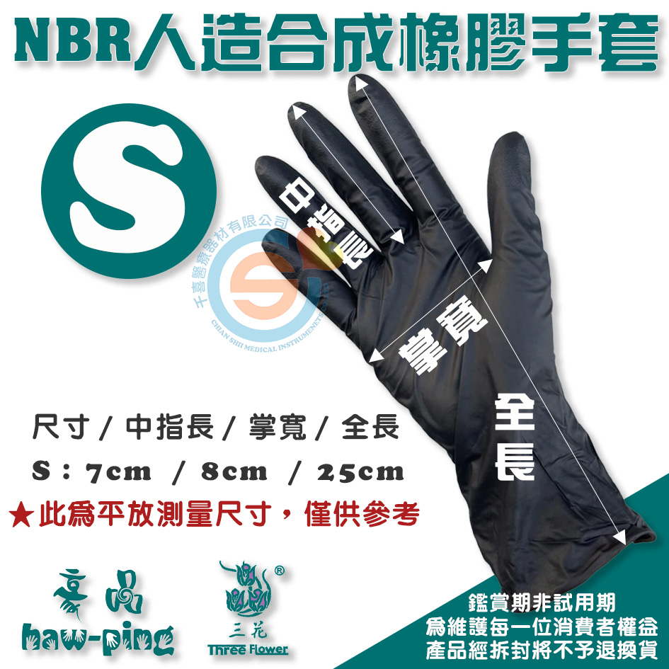 豪品 三花 花朵手套 NBR人造合成橡膠手套 美髮手套 無粉手套 耐油手套 餐飲業手套 黑色加厚手套 千喜醫療 10盒/