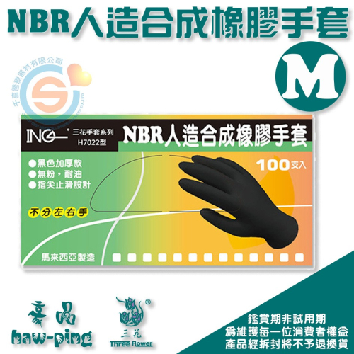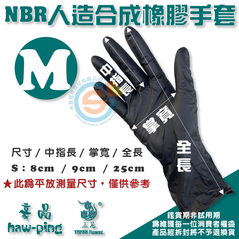 豪品 三花 花朵手套 NBR合成橡膠手套M 美髮手套 無粉手套 耐油手套 餐飲業手套 黑色加厚手套 千喜醫療 10盒/箱