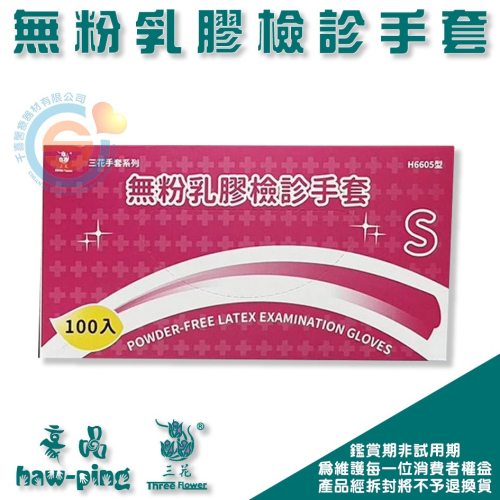 豪品 三花 花朵手套 H6605型 三花無粉乳膠檢診手套S 天然乳膠手套 醫療用手套 無粉手套 千喜醫療 10盒/箱
