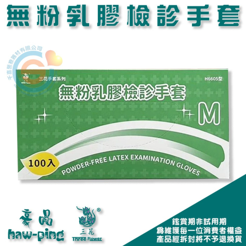 豪品 三花 花朵手套 H6605型 三花無粉乳膠檢診手套M 天然乳膠手套 醫療用手套 無粉手套 千喜醫療 10盒/箱