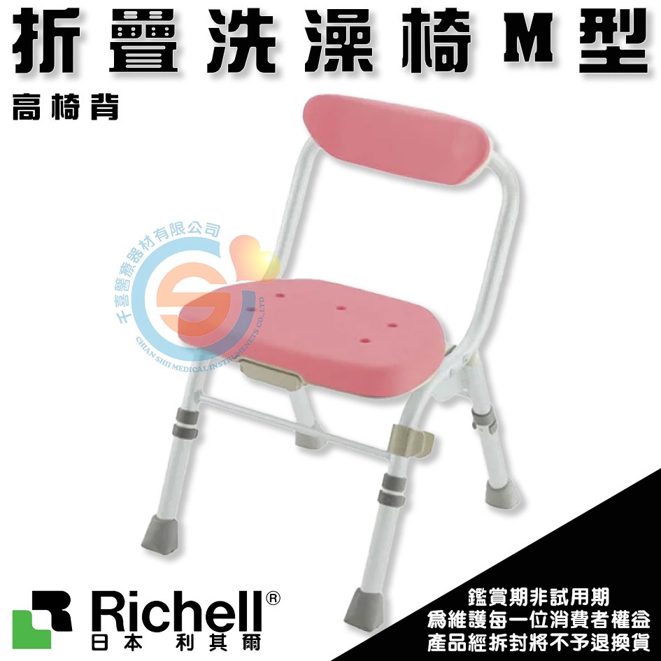 杏豐 日本Richell 利其爾 折疊洗澡椅M型-高椅背 RFA47941粉/47942咖啡 EVA洗澡椅 折疊式洗澡椅