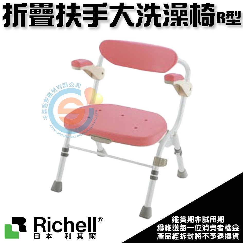 杏豐 日本Richell 利其爾 折疊扶手大洗澡椅R型 RFA48061粉/48066綠/48062咖啡 折疊扶手可掀
