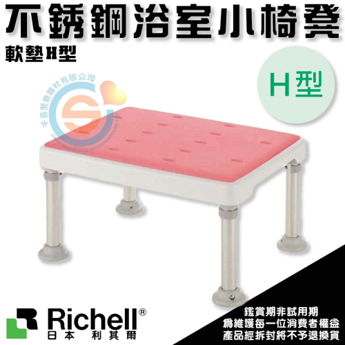 杏豐 日本Richell 利其爾 可調式不銹鋼浴室小椅凳-軟墊H型 RFA49771粉/49776綠/49772咖啡