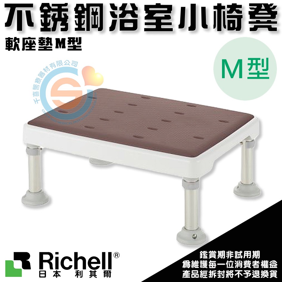 杏豐 日本Richell 利其爾 可調式不锈鋼浴室防滑椅凳-軟座墊M型 RFA49761粉/49766綠/49762咖啡