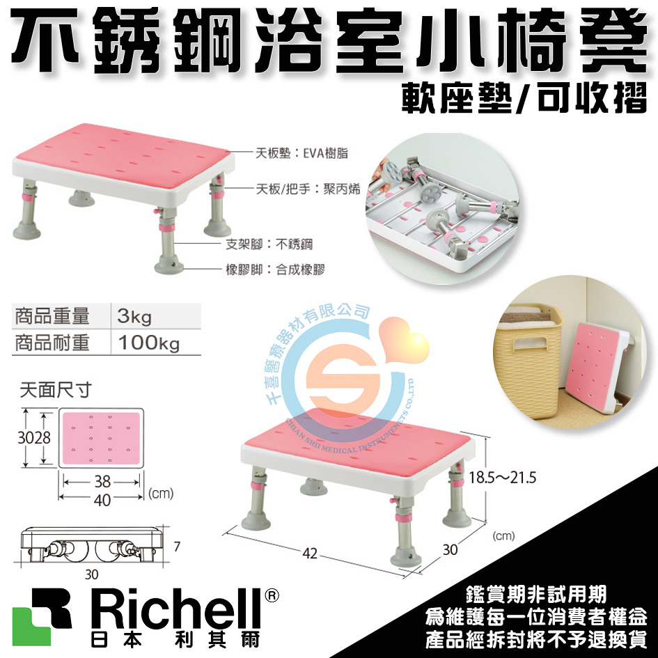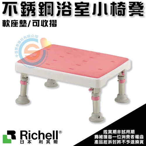 杏豐 日本Richell 利其爾 可收摺不銹鋼浴室椅凳-軟墊型 RFA49791 折疊式不鏽鋼洗澡椅