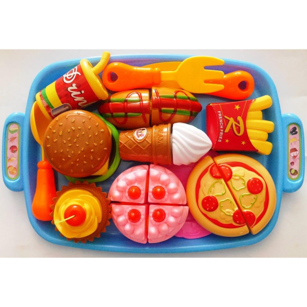 大餐盤下午茶切切樂.家家酒(蛋糕.蛋塔.可樂.麵包.漢堡.薯條.叉子.湯匙 水果蔬菜)特價