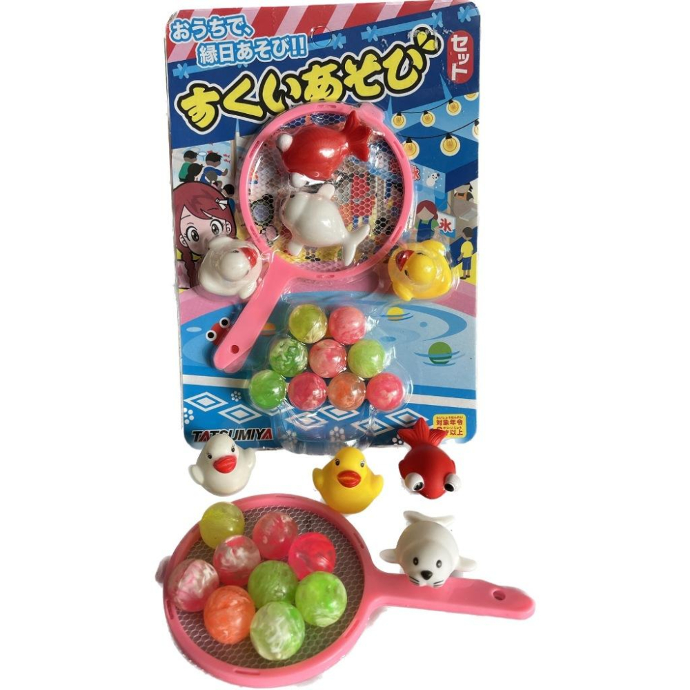 日版小鴨.金魚.海獅.浮水彈力球趣味撈魚組(ST安全玩具)
