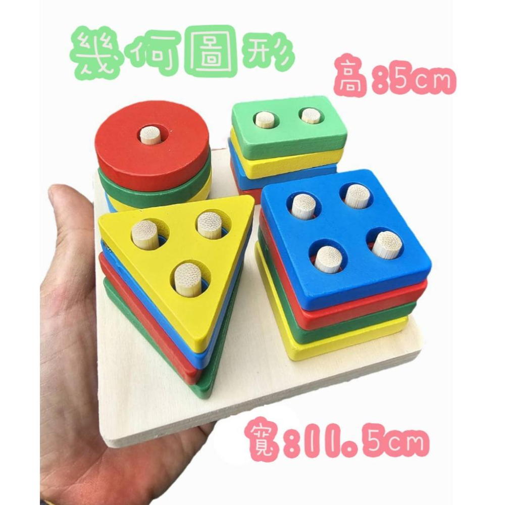 ☆玩具先生☆兒童木製DIY彩虹幾何拼圖積木四件套 益智 教育玩具 蒙特梭利 早教 原木玩具