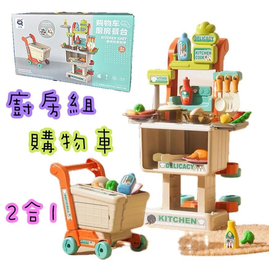 ☆玩具先生☆2合1高品質廚房家家酒+購物車遊戲組