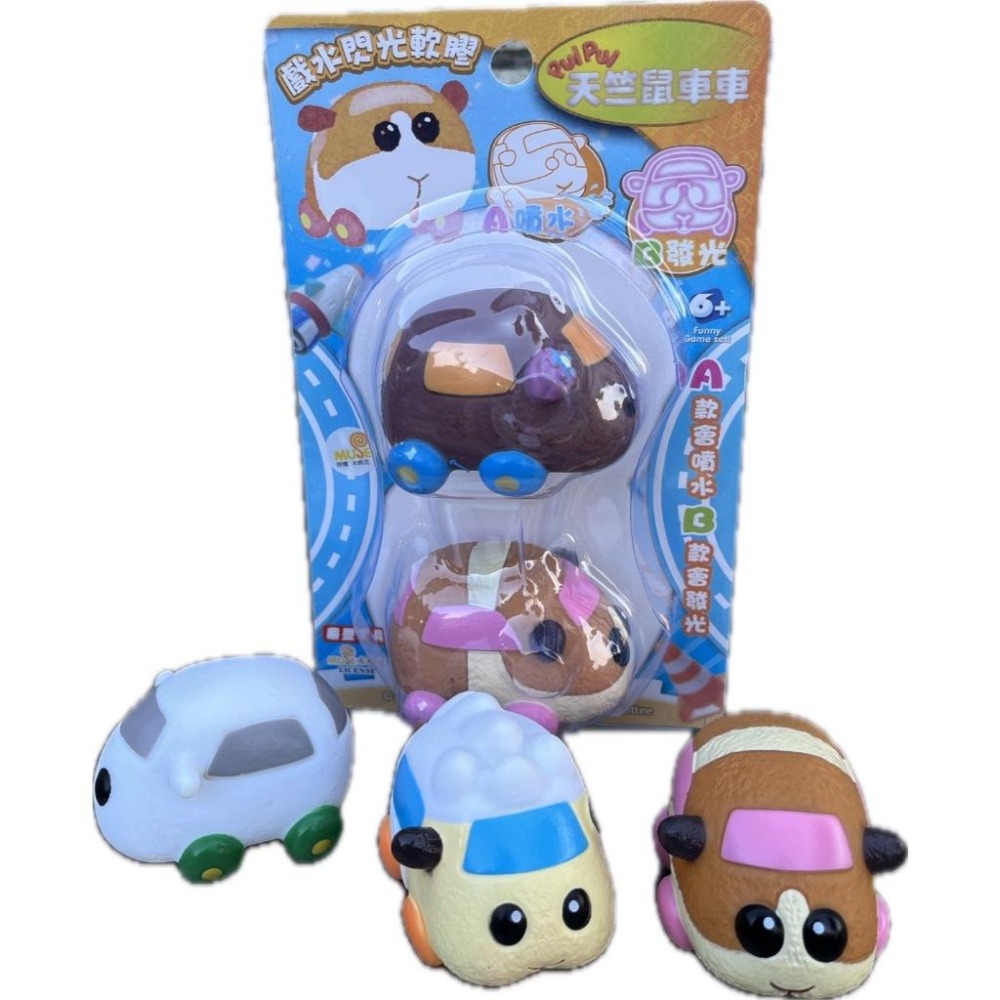☆玩具先生☆㊣2入天竺鼠車車發光/噴水軟膠舒壓洗澡玩具 (ST安全玩具)
