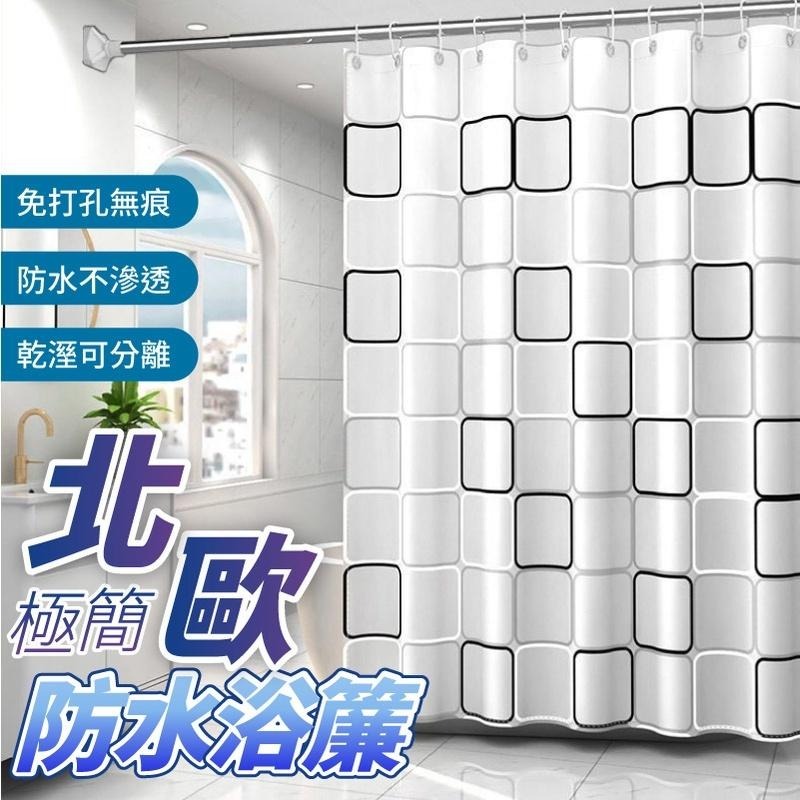 • 黑白格|防水浴簾 S096 黑白格|防水浴簾 S096