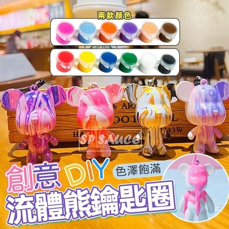 🎉【商品規格】: 鑰匙扣熊1隻+刷子1支+顏料六色 (兩款隨機)