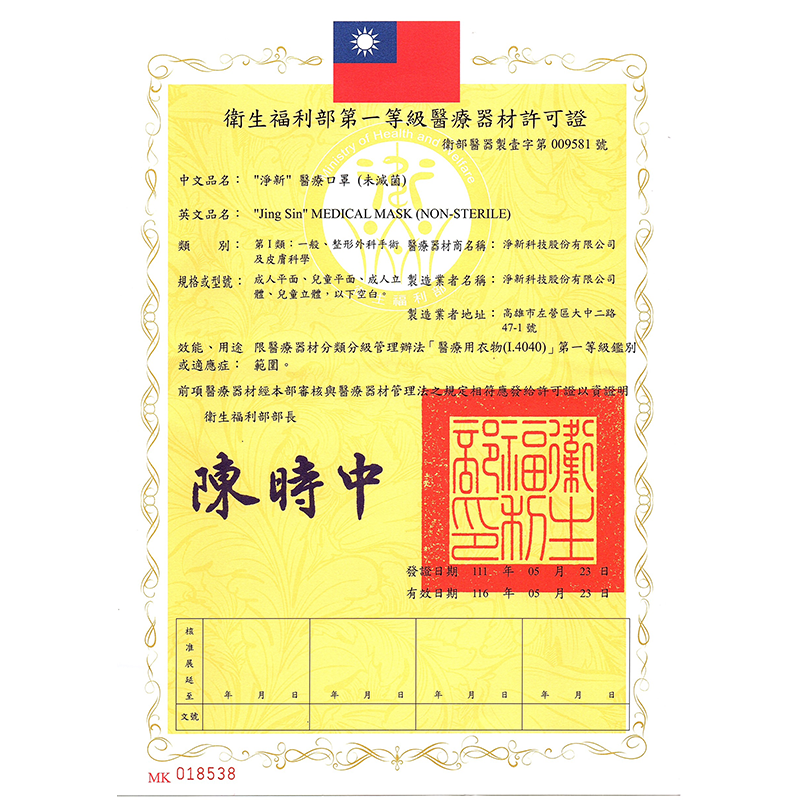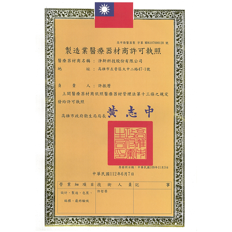醫療器材製造業者名稱:淨新科技股份有限公司