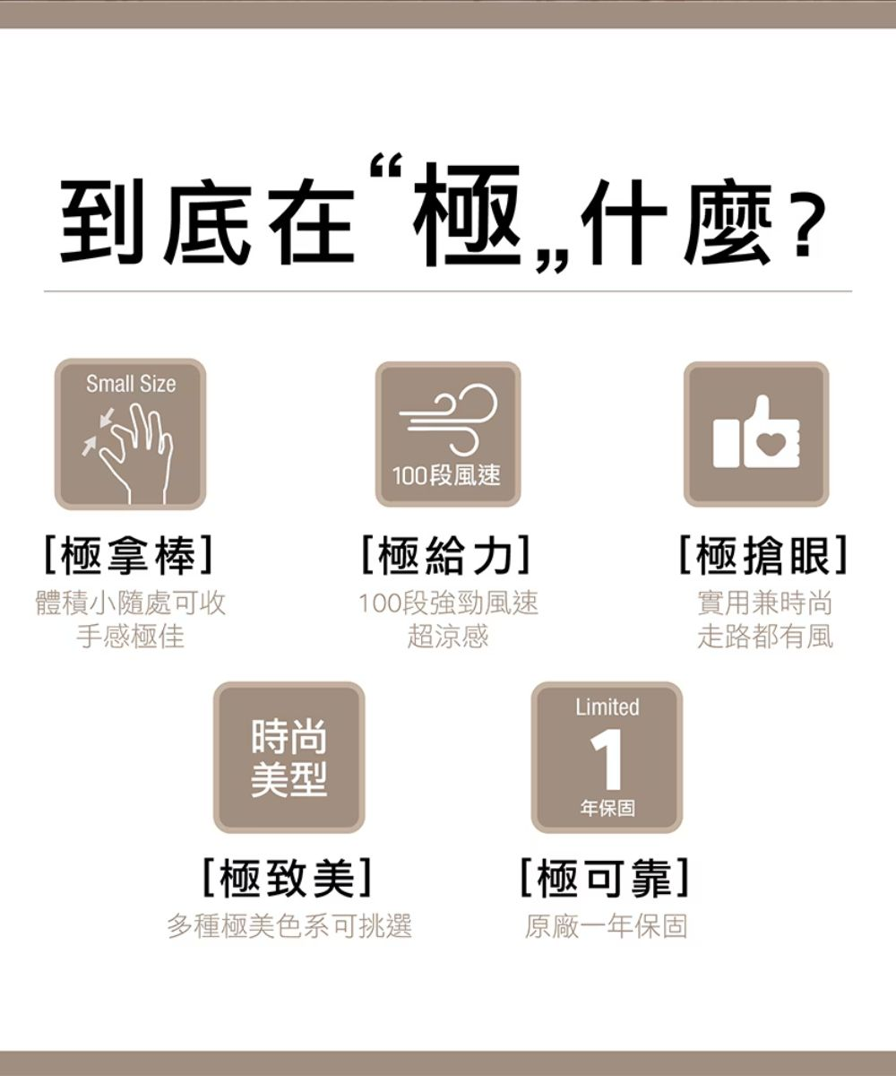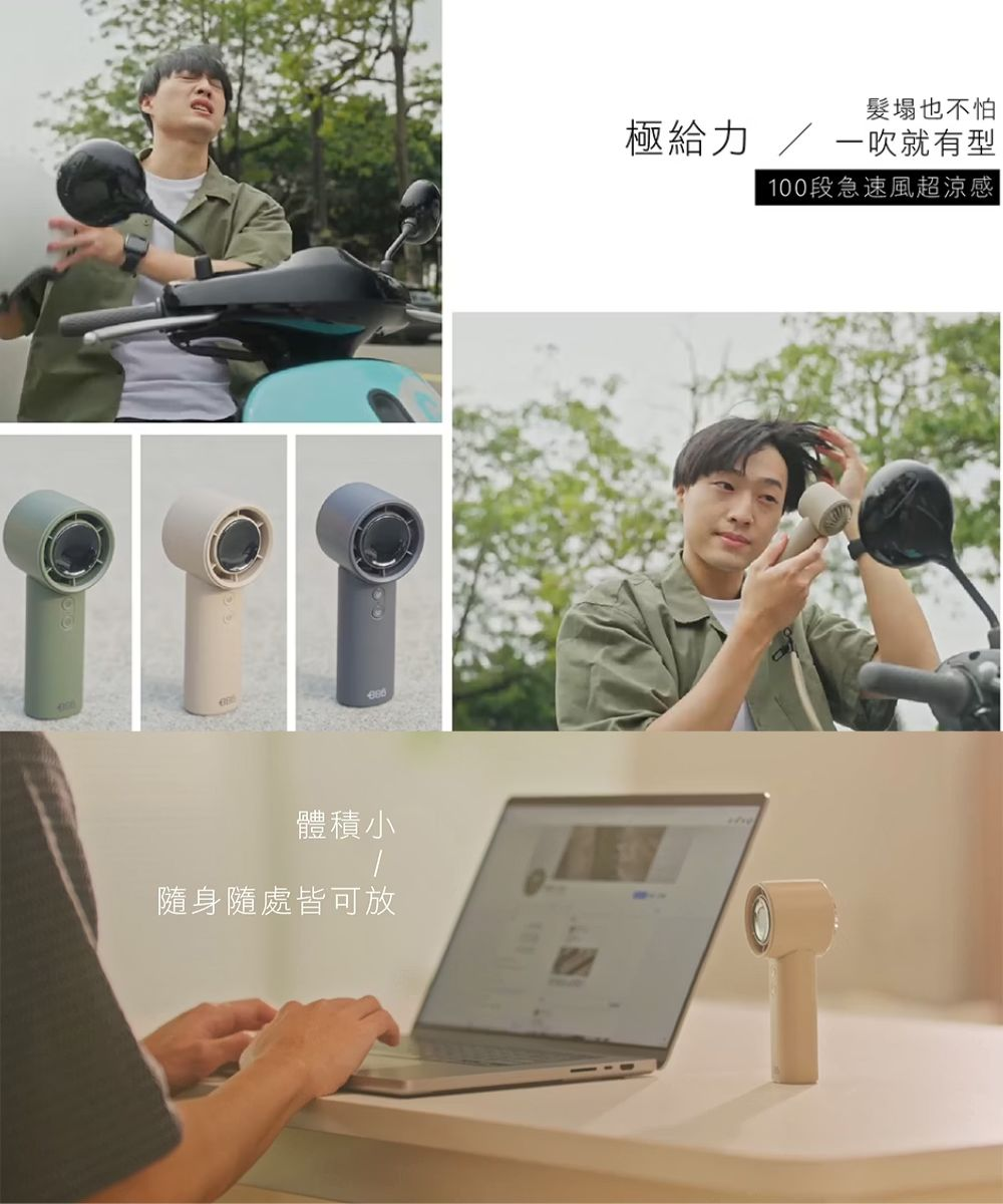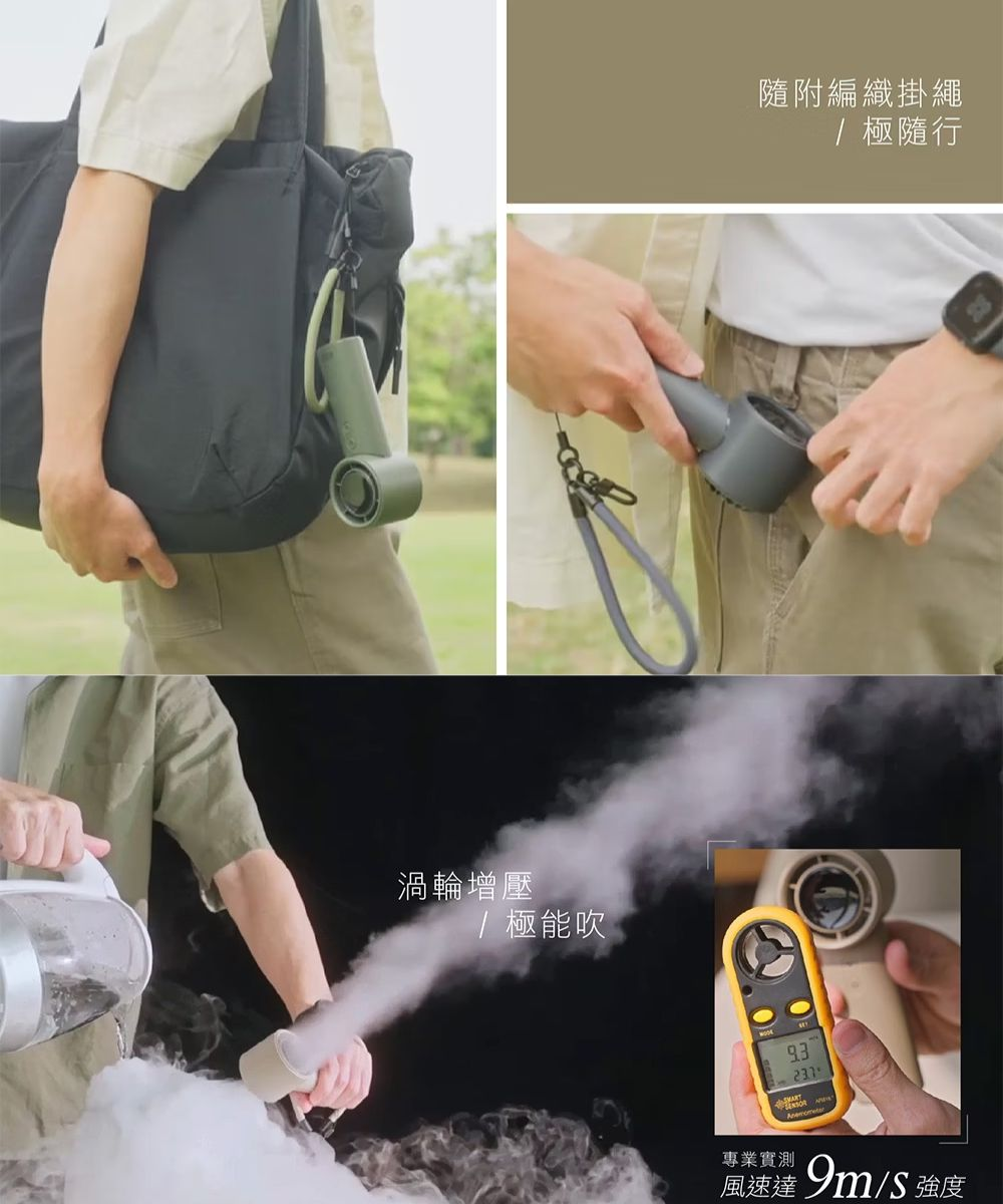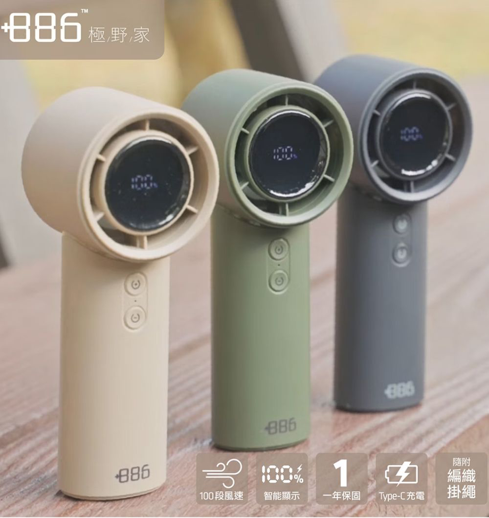 +886[極野家]極速手持風扇 智能顯示 100段位風速 隨附掛繩/ABS掛勾(軍綠/奶茶棕/迷霧灰)
