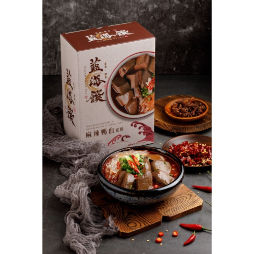 調理包&油包成份:水、雞骨、鴨血【鴨血、水、鹽、焦磷酸鈉、多磷酸鈉、偏磷酸鉀、矽樹脂、脂肪酸山梨醇酐酯、聚山梨醇酐脂肪酸酯、羧甲基纖維素鈉】、麻辣醬【沙拉油、芝麻香油(大豆油、芝麻)、辣豆瓣醬(蠶豆、精鹽、辣椒)、酒釀(米、酒麴、水)、紅蔥、蒜、糖、鹽、胡椒、甘草、肉桂、草果、八角、豆蔻、朝天椒、大紅袍、雞心椒】、鹽、L-麩酸鈉。