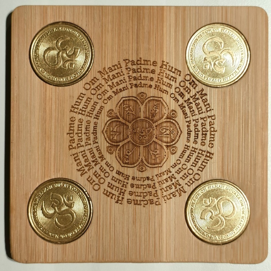 金色銅幣上 OM 種子字 與 六字大明咒