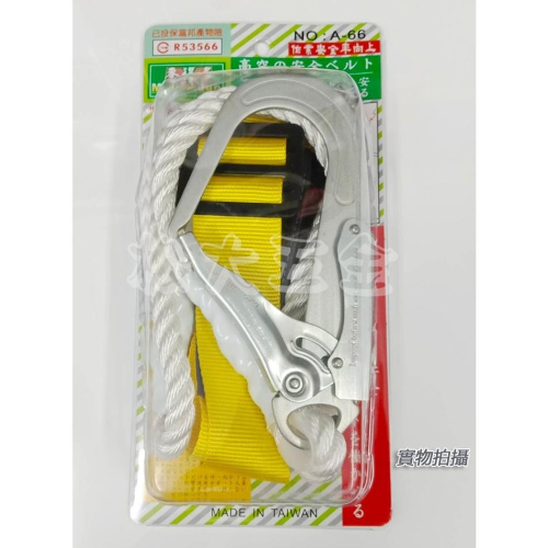 麥得多A-66 安全帶(單大勾)腰掛式安全帶 工作安全繩 大勾安全帶 工程攀高繫身型 檢驗合格 *型式:腰掛式安全帶/繫身型安全帶(單大鉤) *繩粗:約16.5mm *繩長:3.6尺 台灣製 檢驗合格 保證100%全新公司貨