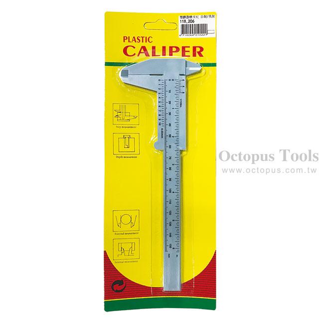 材質:塑膠 長度:6" 公制測量範圍:0~150mm (解析度 0.05mm) 英制測量範圍:0~6" (解析度 1/128") ◆ 量測尺寸用。 ◆ 重量輕,方便使用,易於攜帶。 台灣製