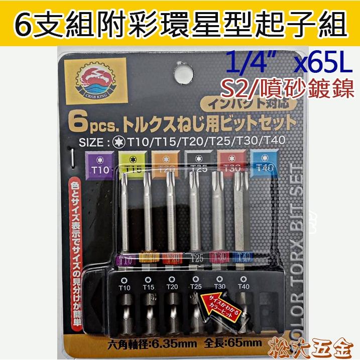 【附發票】"現貨"CRAB KING 蟹王 6PCS 迷你星型起子組 六角柄電動起子頭 多彩起子頭《松大五金》 TORX(無孔):T10-15-20-25-30-40 六角軸徑:6.35mm 材質:S2/噴砂鍍鎳 ☆保證販售商品100%全新公司貨。 ☆政府立案,正派經營,售後服務有保障。