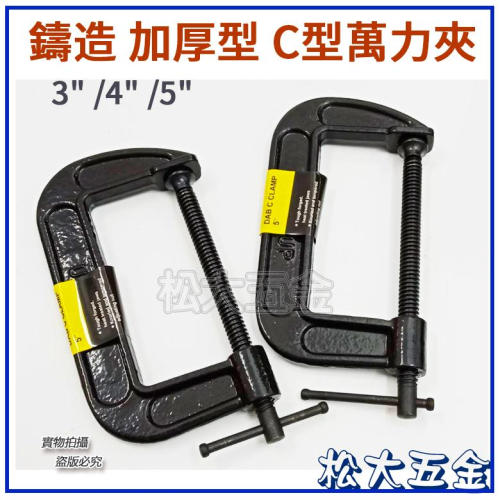 DAB 高品質 加厚型3" /4" /5" C型夾 C型萬力夾 C型固定夾 鑄造 全鑄鋼,厚實耐用 鑄鋼加厚型C型夾, 非一般薄型鑄鐵夾具, 尺寸: 1吋/2吋/3吋/4吋/5吋/6吋/8吋 全鑄鋼,厚實耐用 全新公司貨