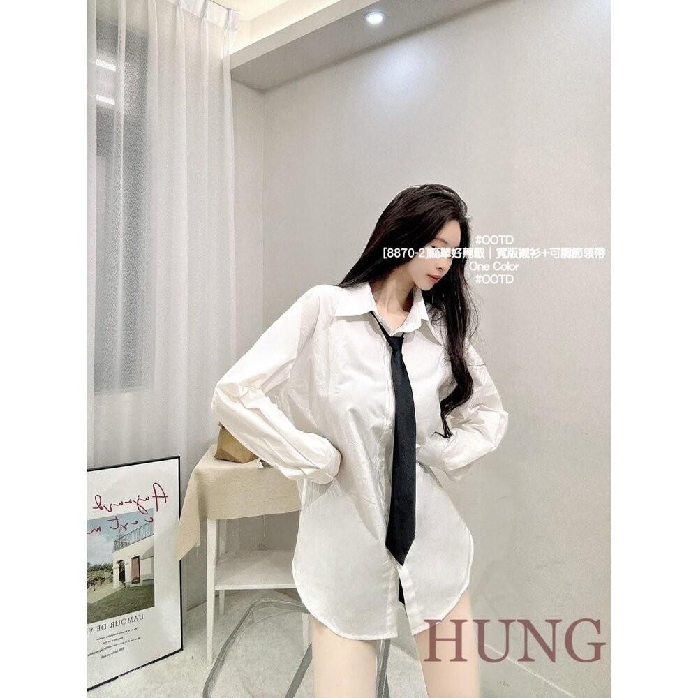 🅷🆄🅽🅶韓系熱門簡單好駕馭|寬版襯衫+可調節領帶