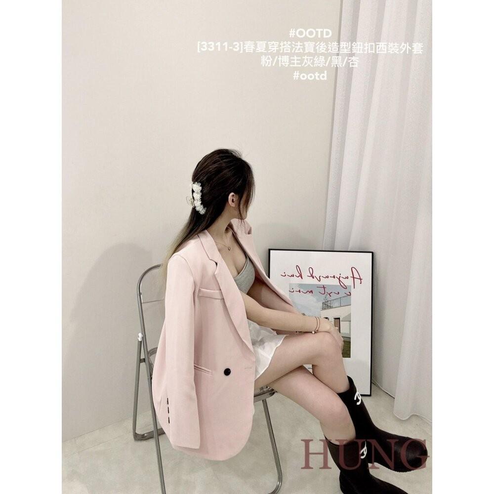 🅷🆄🅽🅶韓系熱門春夏穿搭法寶後造型鈕扣西裝外套