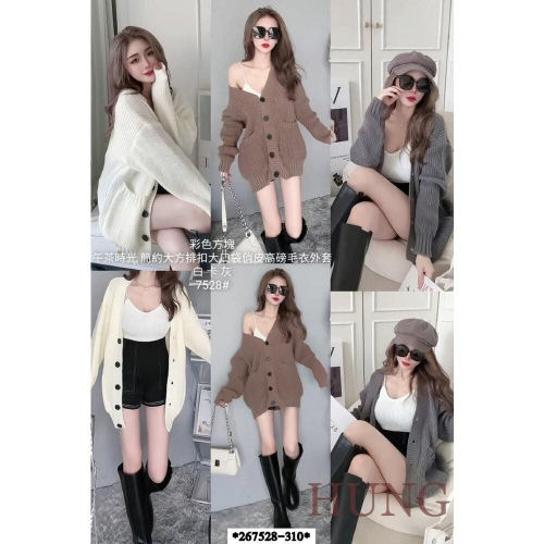 🅷🆄🅽🅶韓系熱門大方排釦大口袋高磅毛衣外套