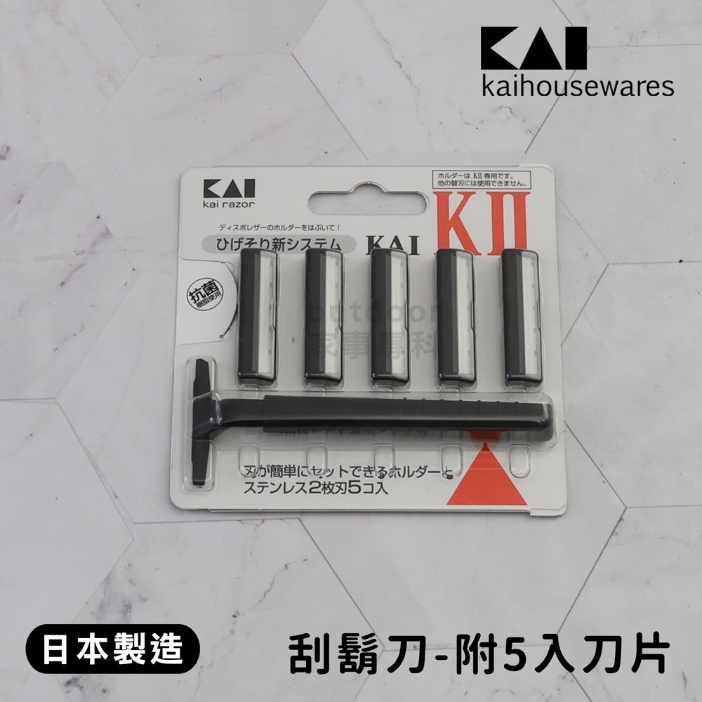 ☆outdoor家事專科☆ 日本製 貝印KAI KⅡ抗菌刮鬍刀 附5入刀片 手動刮鬍刀 T型除毛刀 建議刮鬍刀 手動刮鬍 K2-5B1