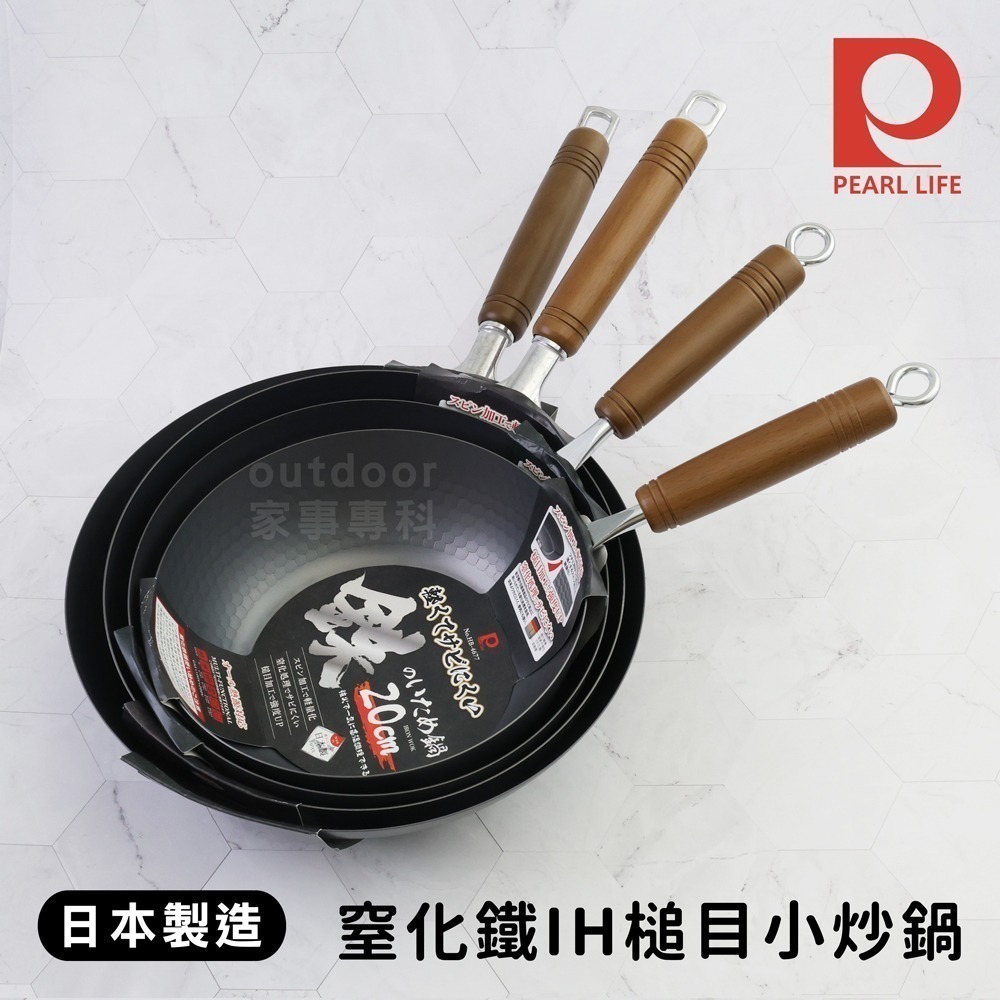 ☆outdoor家事專科☆日本製 Pearl Life 窒化鐵槌目小炒鍋 鐵鍋 20/22/24/27cm 平底深炒鍋