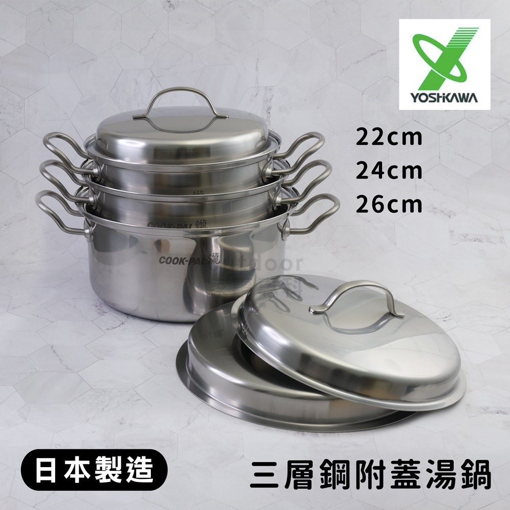 ☆outdoor家事專科☆日本製 Yoshikawa吉川 18-8三層鋼附蓋湯鍋 雙耳鍋 IH爐可用 鑨COOK-PAL YJ-1738/39/40