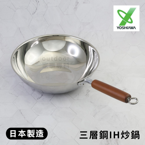 ☆outdoor家事專科☆日本製 Yoshikawa吉川 18-8三層鋼炒鍋 30cm 不銹鋼炒菜鍋 IH爐可用 鑨COOK-PAL YJ-1744