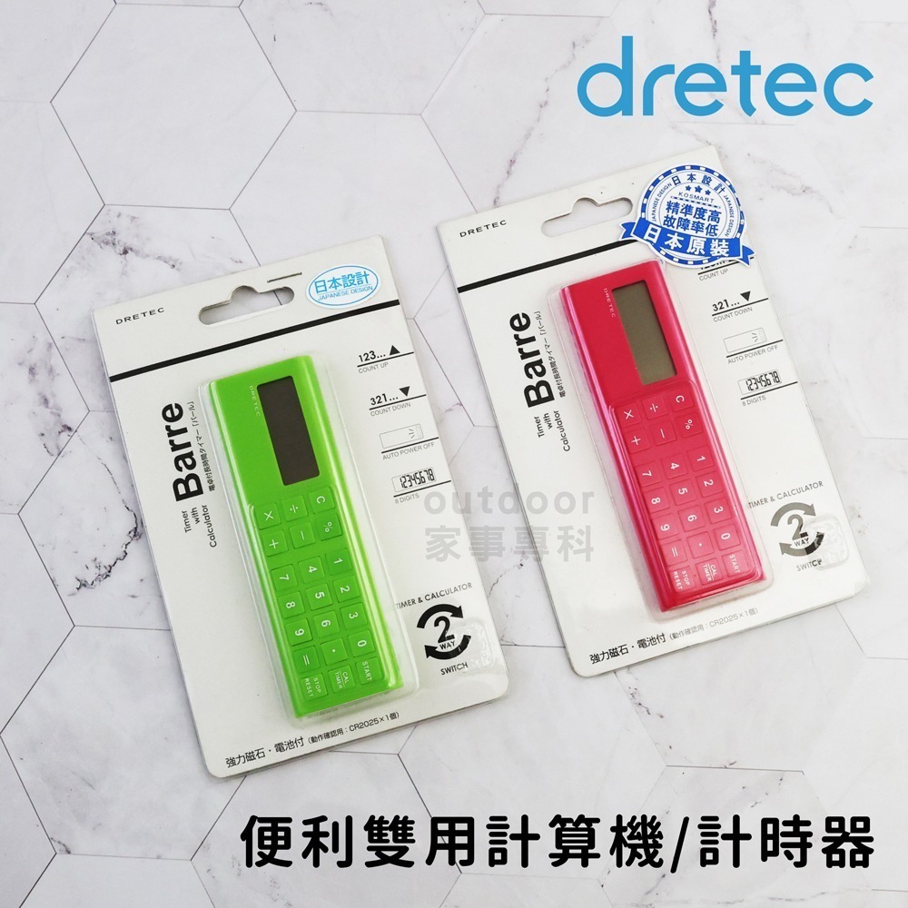 ☆outdoor家事專科☆ 日本 dretec 便利雙用計算機/計時器 兩用計時器 長時間計時器 辦公 綠/粉 CL-117GN/PK