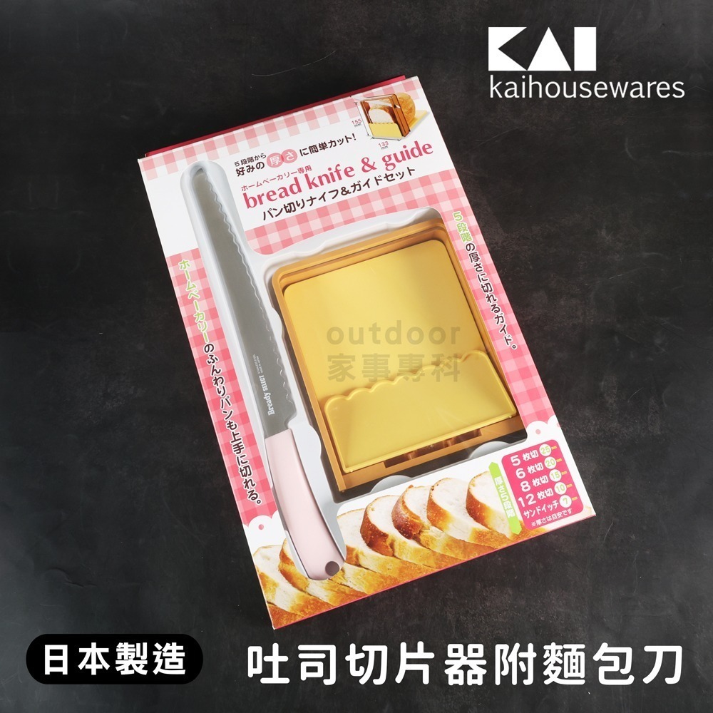 ☆outdoor家事專科☆ 日本製貝印KAI 簡易調整吐司切片器 附鋸齒麵包刀 摺疊式 吐司分片器 長條吐司 AC-0059