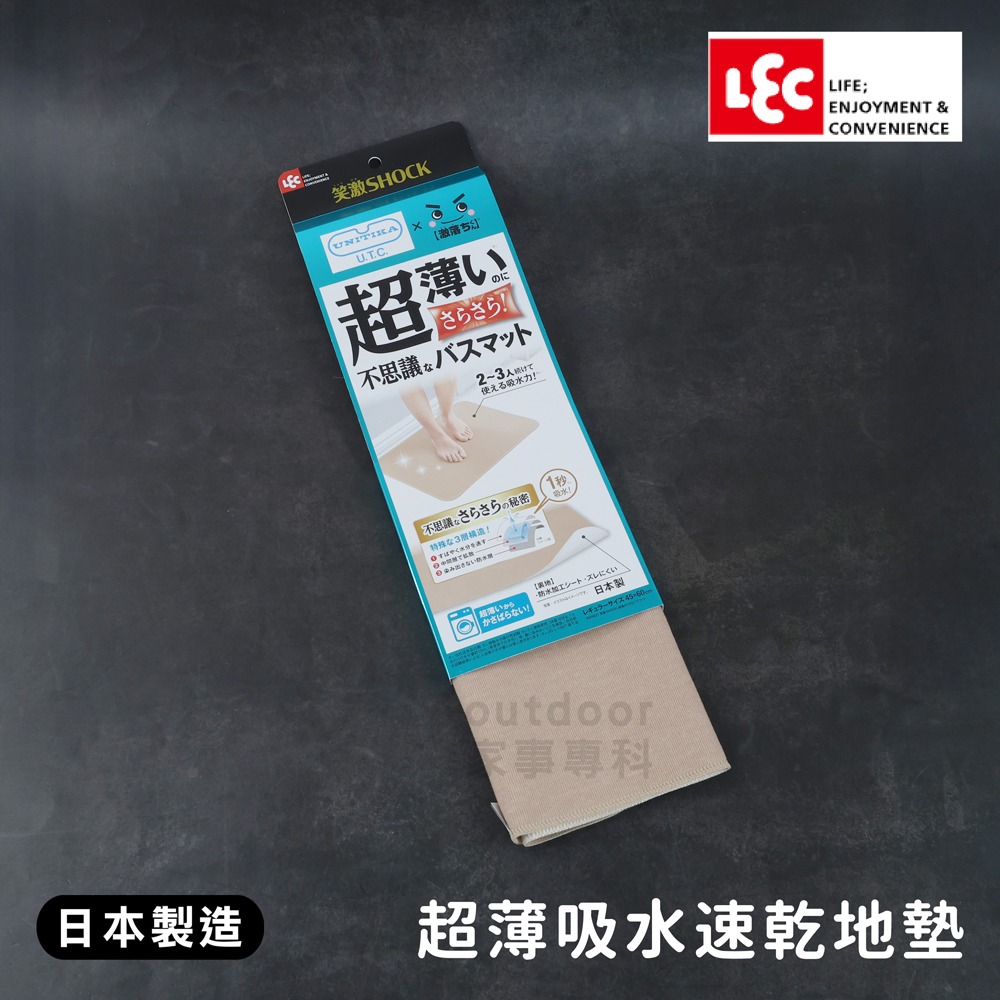 ☆outdoor家事專科☆日本製 LEC 笑激SHOCK 超薄吸水速乾地墊 3層構造 60x45cm 超薄腳踏墊 米褐色
