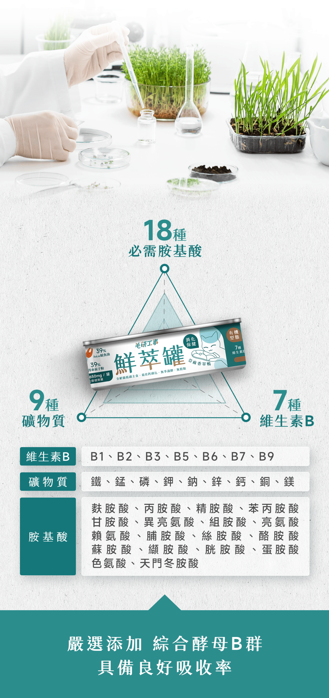 Exnutra鮮萃罐以Extra(額外)Nura(光)作為核心,添加添加綜合酵母B群,並且根據皮毛、心血管、免疫、消化、眼睛、泌尿等六大機能保健設計,最後透過三大鮮味物質調整風味,讓鮮萃罐不需仰賴香精也能散發濃郁香氣,是一款符合營養均衡、機能保健、天然食材三大目標的主食罐!