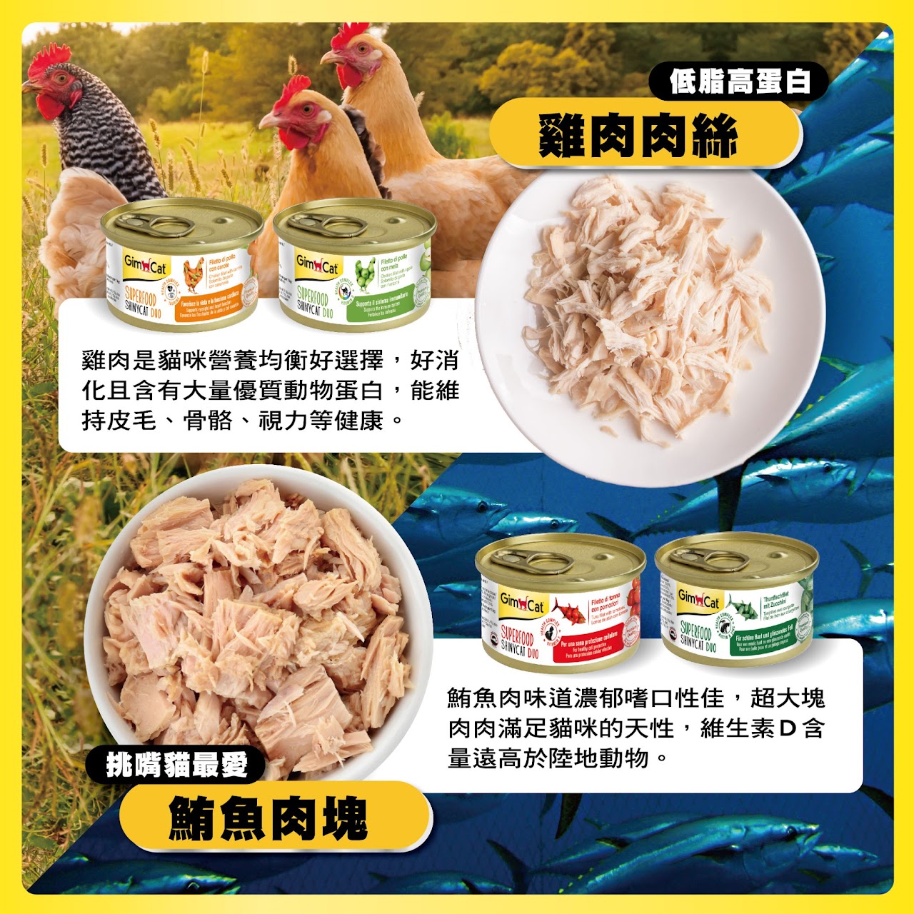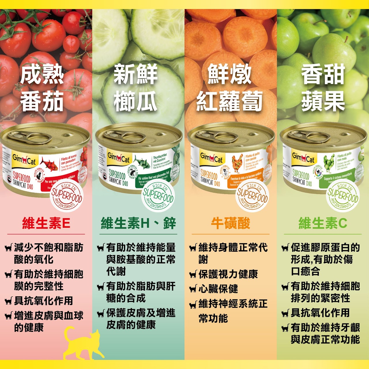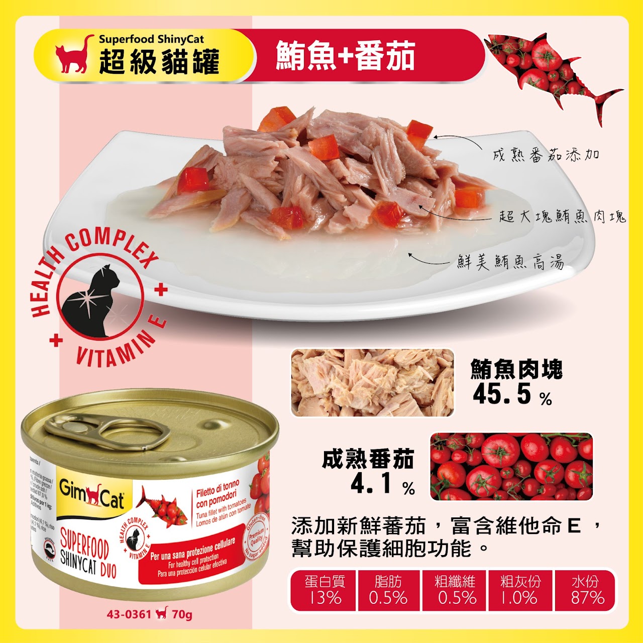 提供豐富的蛋白質、維生素E及牛磺酸,提供愛貓最美味及均衡的一餐,使一天的活力充沛。