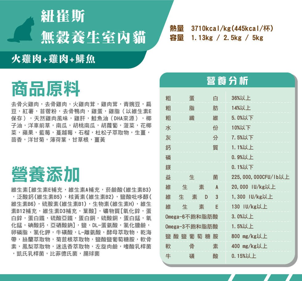 無穀養生室內貓(火雞肉+雞肉+鴨肉)