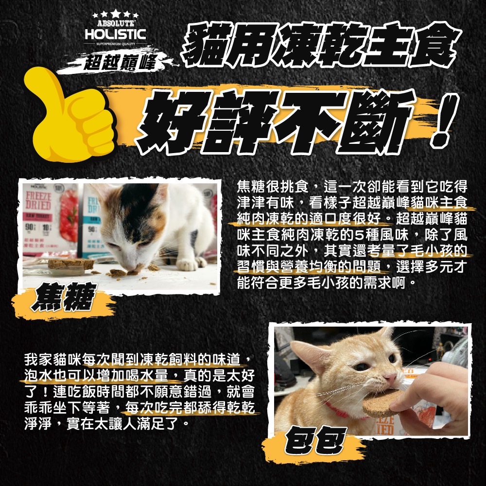 由於冷凍乾燥特殊的製作過程❣️不會破壞食材中的蛋白質,因此不會改變外觀及味道。比起一般寵物食品在烹煮時流失耗損,冷凍乾燥可以保存更完整的營養🌿