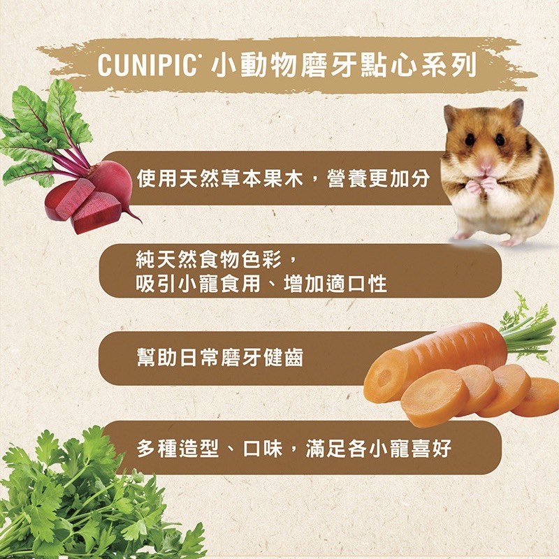 ✨品名:CUNIPIC小動物草本蔬菜磨牙點心 雙口味吊掛款 350g
