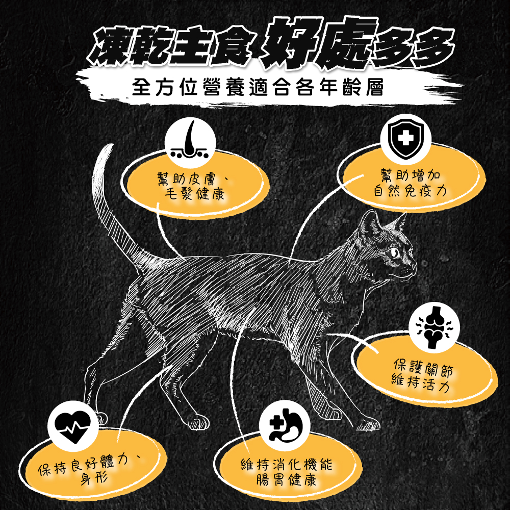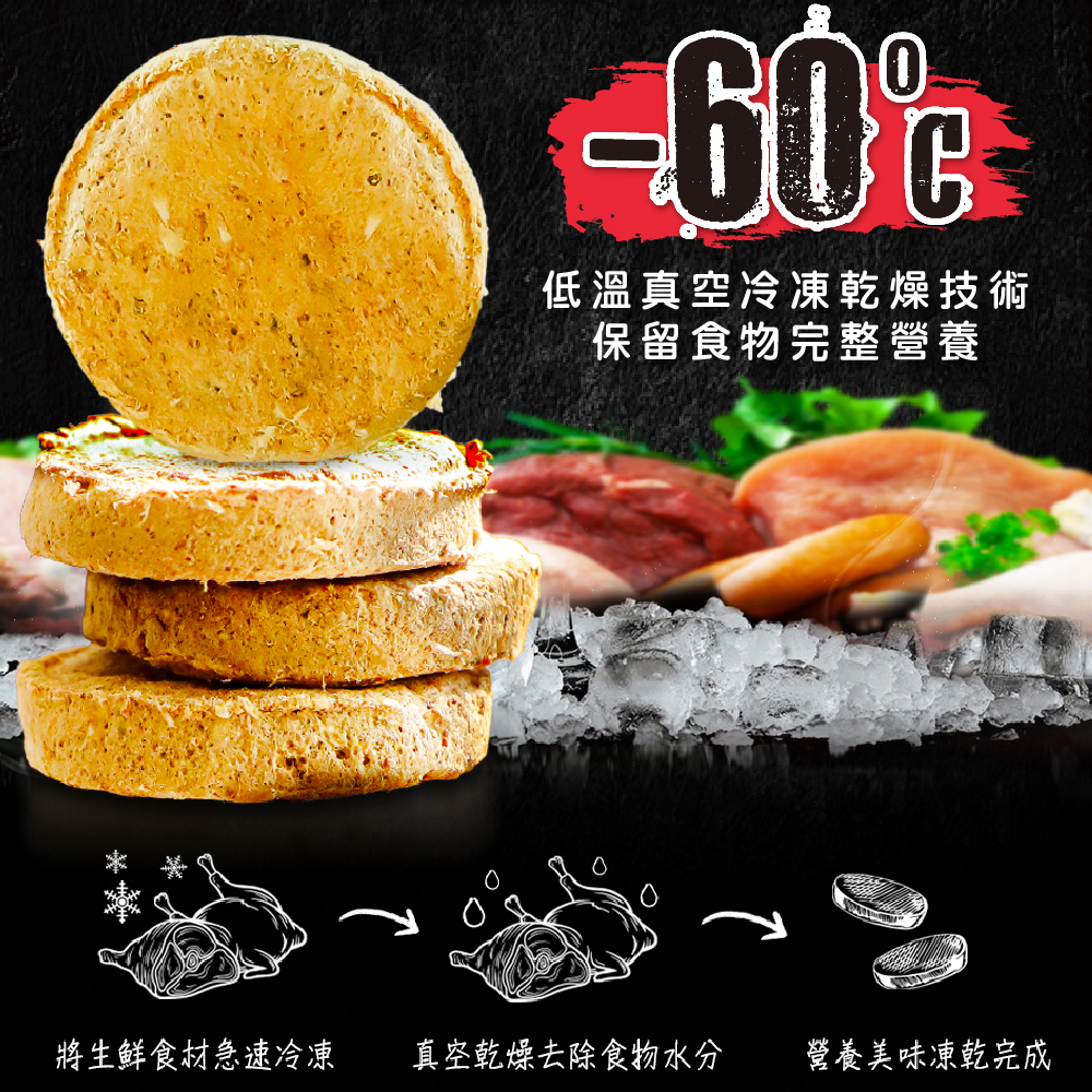 由於冷凍乾燥特殊的製作過程❣️不會破壞食材中的蛋白質,因此不會改變外觀及味道。比起一般寵物食品在烹煮時流失耗損,冷凍乾燥可以保存更完整的營養🌿