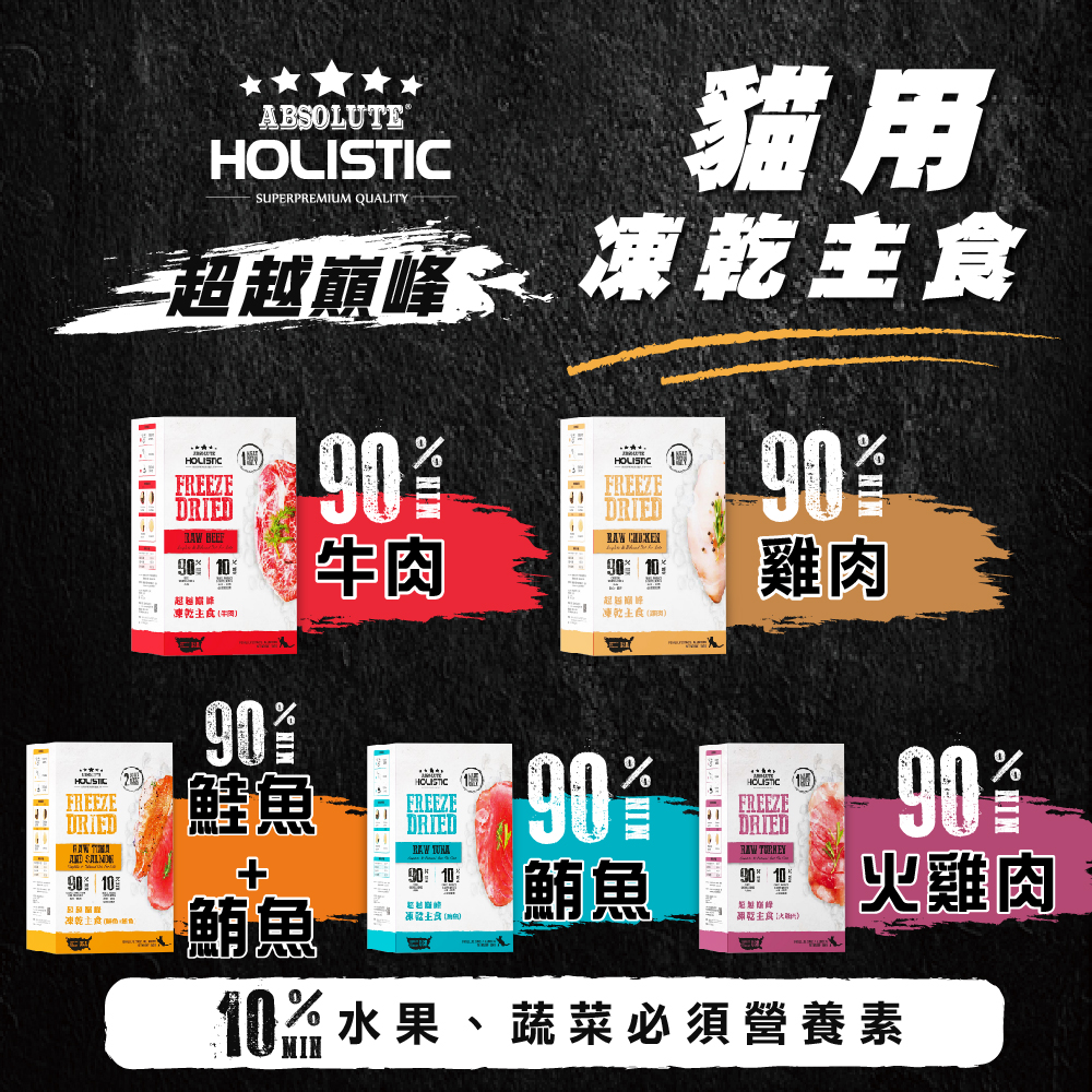 🐱維持理想體態:90%完整肉類營養,加上 10% 蔬菜、水果、超級食物、必須營養素,低碳水高蛋白,讓貓狗不因攝取過多澱粉而發胖。