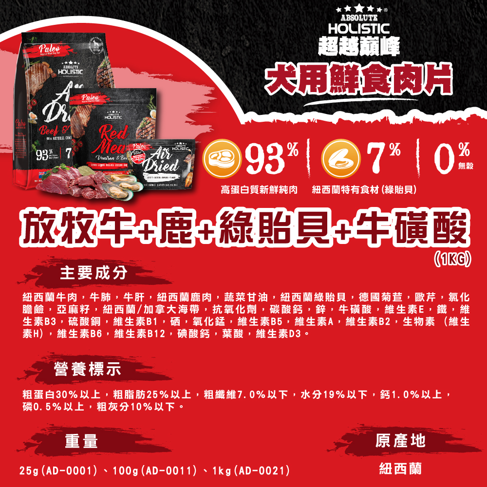 超越巔峰 犬用鮮食肉片 - 放牧牛&鹿+綠貽貝+牛磺酸