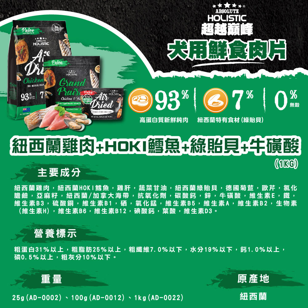 超越巔峰 犬用鮮食肉片 - 紐西蘭雞肉+HOKI鱈魚+綠貽貝+牛磺酸