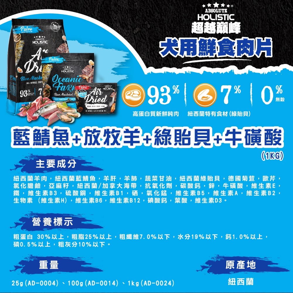 超越巔峰 犬用鮮食肉片 - 藍鯖魚+放牧羊+綠貽貝+牛磺酸