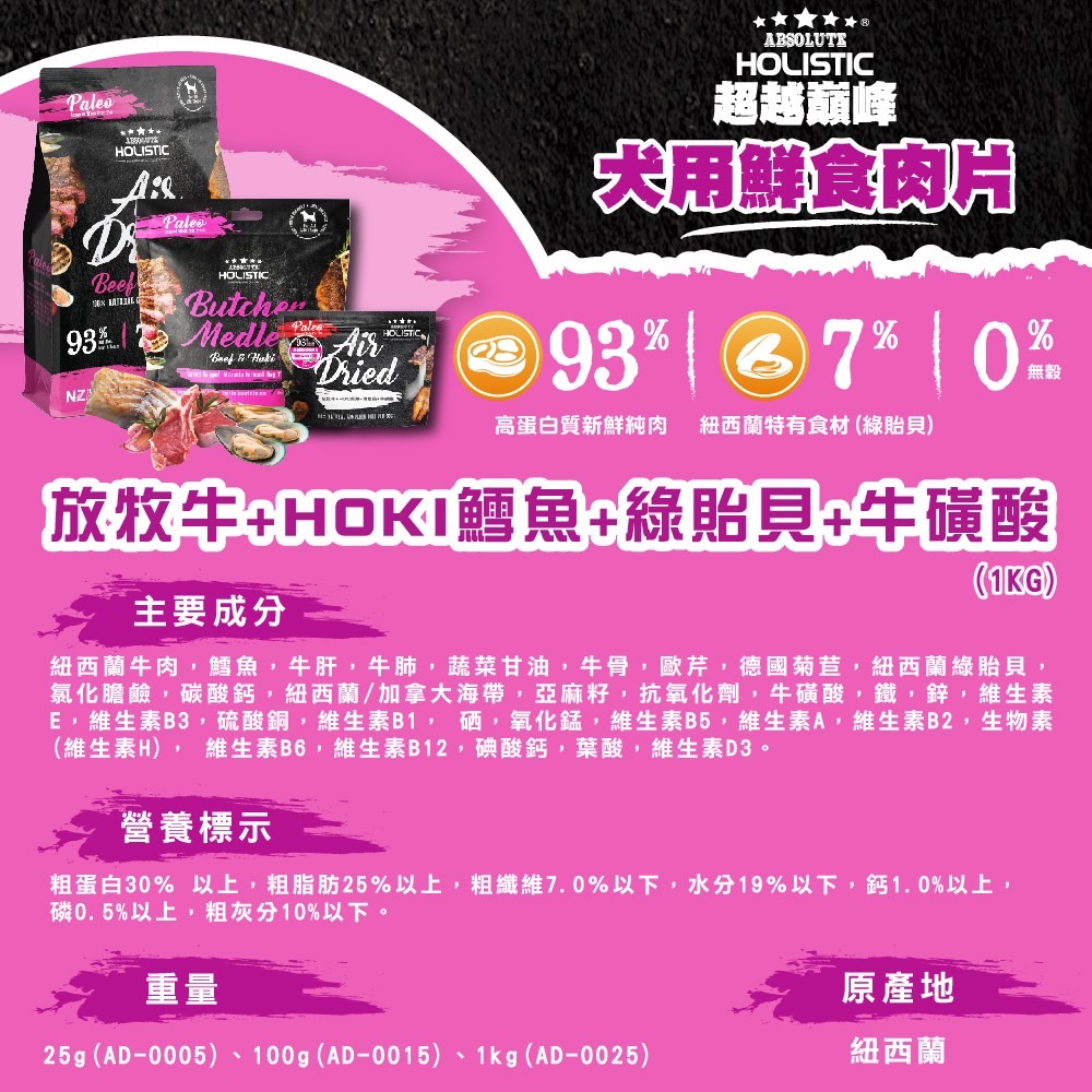 超越巔峰 犬用鮮食肉片 - 放牧牛+HOKI鱈魚 +綠貽貝+牛磺酸