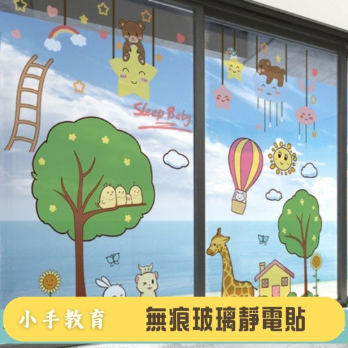 無痕玻璃佈置靜電貼(小熊梯子長頸鹿)