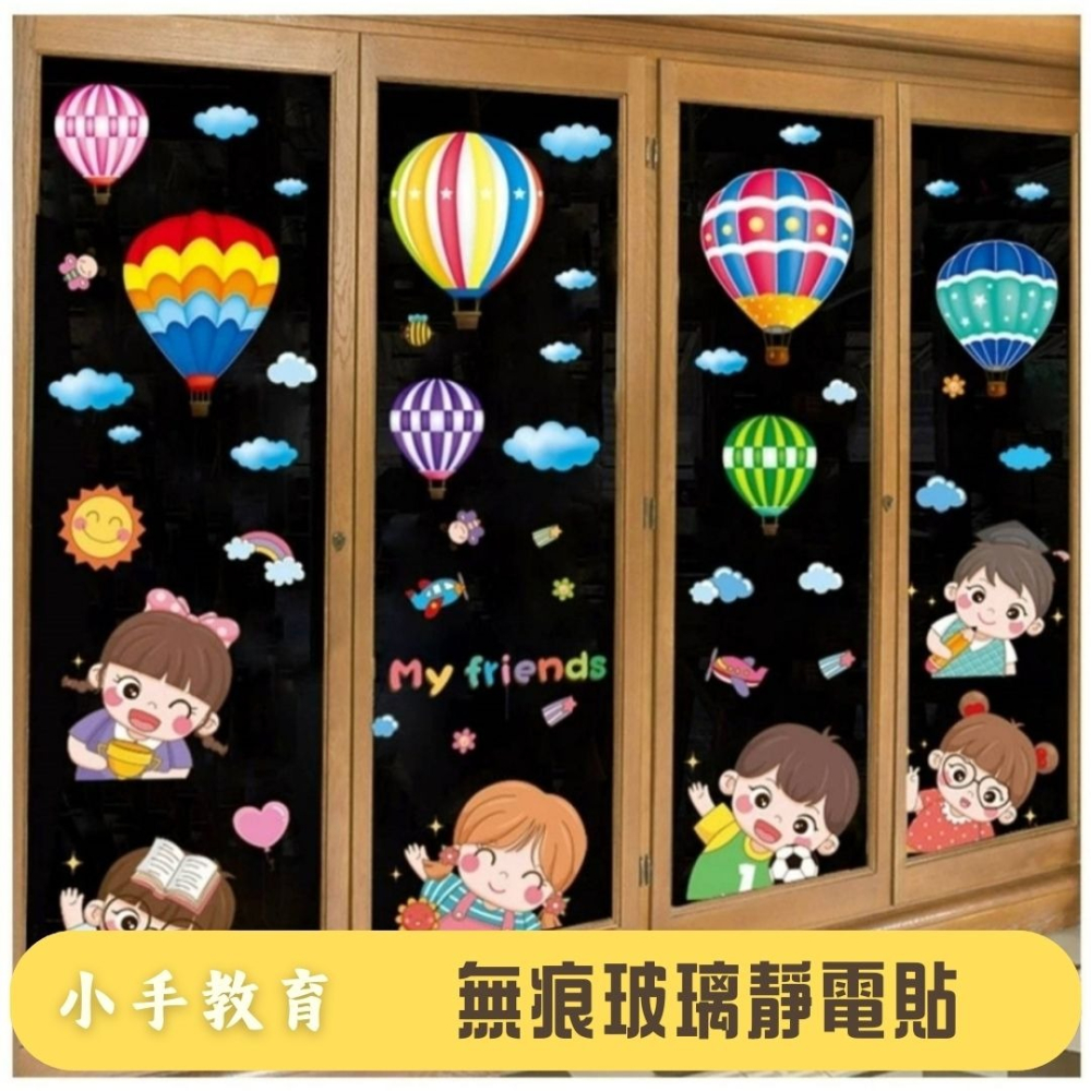 無痕玻璃佈置靜電貼(可愛小朋友與熱氣球)