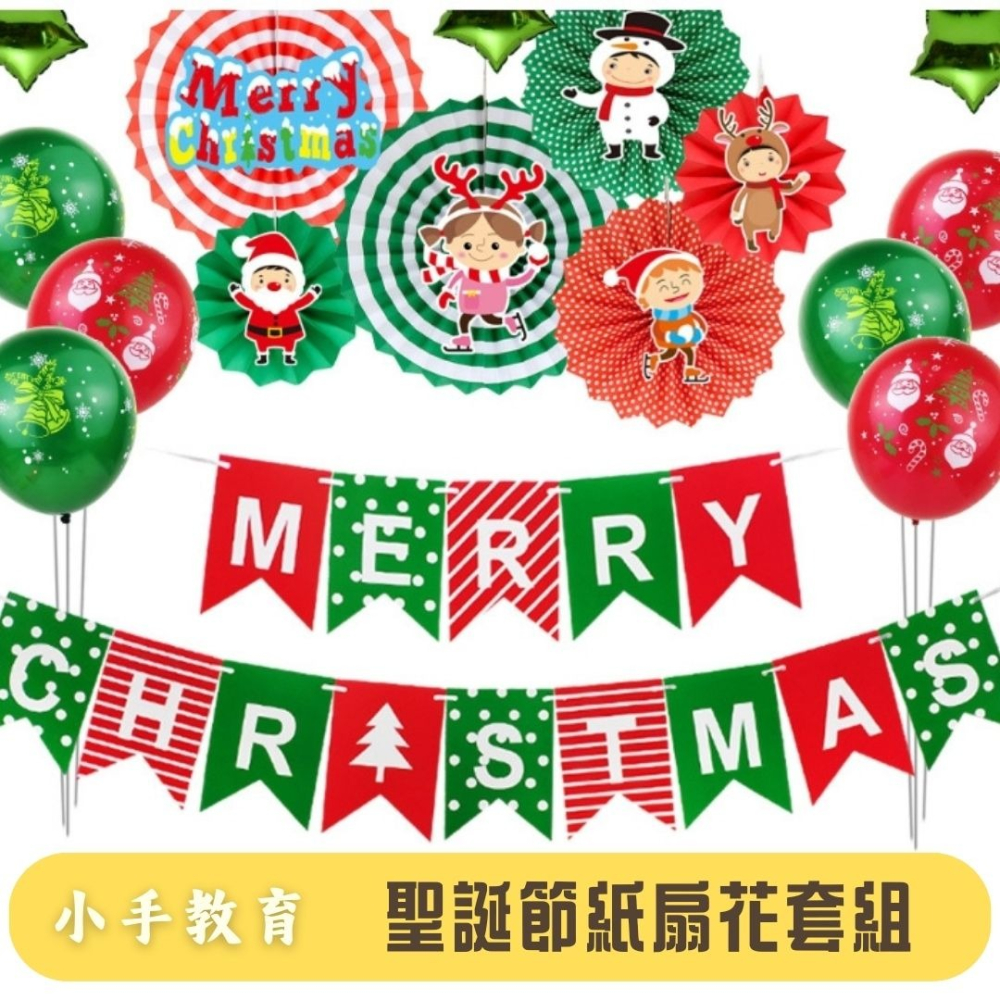 |數量:一組含:紙扇花x6朵,圓形氣球x6顆,星星氣球x5顆,聖誕節拉旗